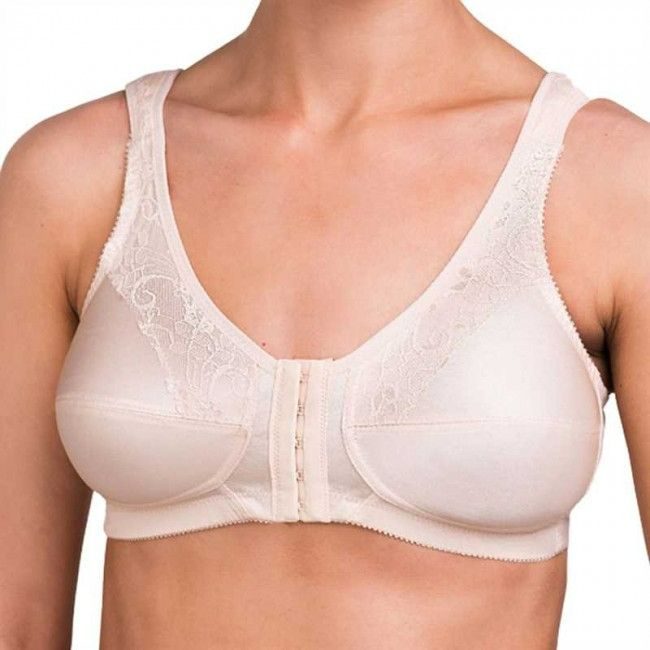 No more struggles with difficult to reach hooks! The front and back closures of this lovely lace accent soft cup bra make it is so easy to get on and off, while still allowing adjustability with the back-hook closure.